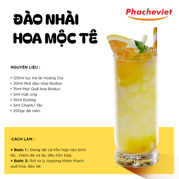 2. Công thức pha chế Đào Nhài Hoa Mộc Tê