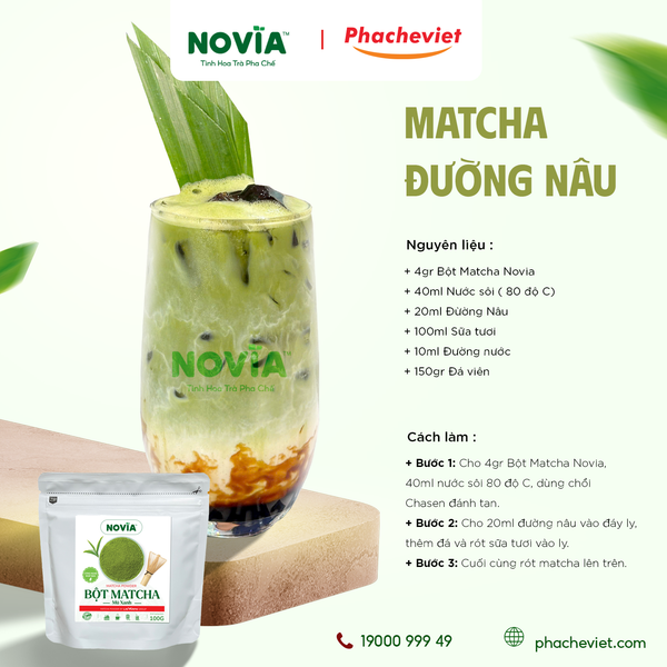 - 4gr Matcha Novia + 40ml nước sôi 80 độ C
