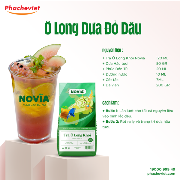 Công thức pha chế Ô Long Dưa Đỏ Dâu