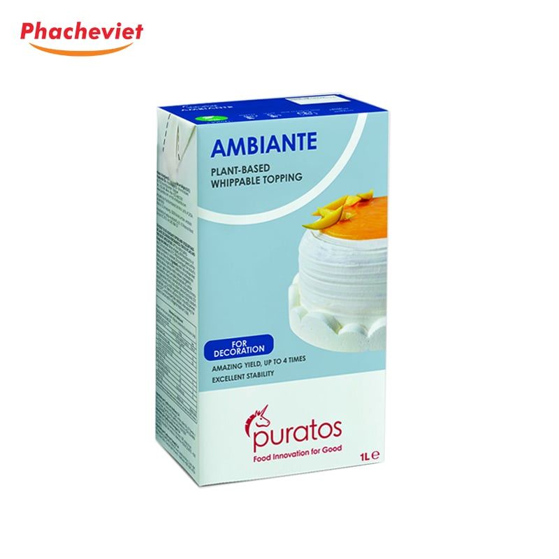 Kem Ambiante là một loại kem sữa béo thực vật được sáng tạo để phù hợp cho việc giữ lớp kem trang trí thêm ổn định. Vị ngọt cũng như màu trắng và cấu trúc mịn màng của sản phẩm khiến cho Ambiante là một loại kem lý tưởng cho việc trang trí thành phẩm – giúp cho thành phẩm giữ được cấu trúc ổn định tới vài ngày.