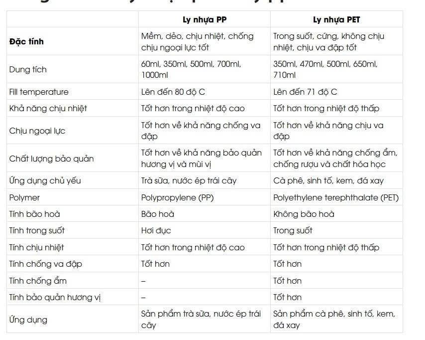 Ly có thể chịu nhiệt nên bạn đựng cà phê nóng, hoặc trà nóng đều tốt. Nhựa pp cũng là nhựa có thể chịu được nhiệt lên đến 120 độ C mà bạn không lo sợ bị phôi nhiễm độc sang đồ uống.