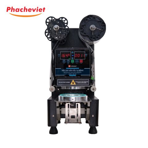 - Máy dập nắp cốc tự động Unibar UBS-357 là sản phẩm được nâng cấp các linh kiện, bản mạch của Đài Loan với các tiêu chuẩn xuất khẩu Châu Âu: Bền, ít lỗi, vận hành ổn định. Máy dùng được cho các loại cốc nhựa PP và cốc giấy. Unibar UBS-357 có khả năng dập được các size cốc 300ml, 500ml và 700ml.