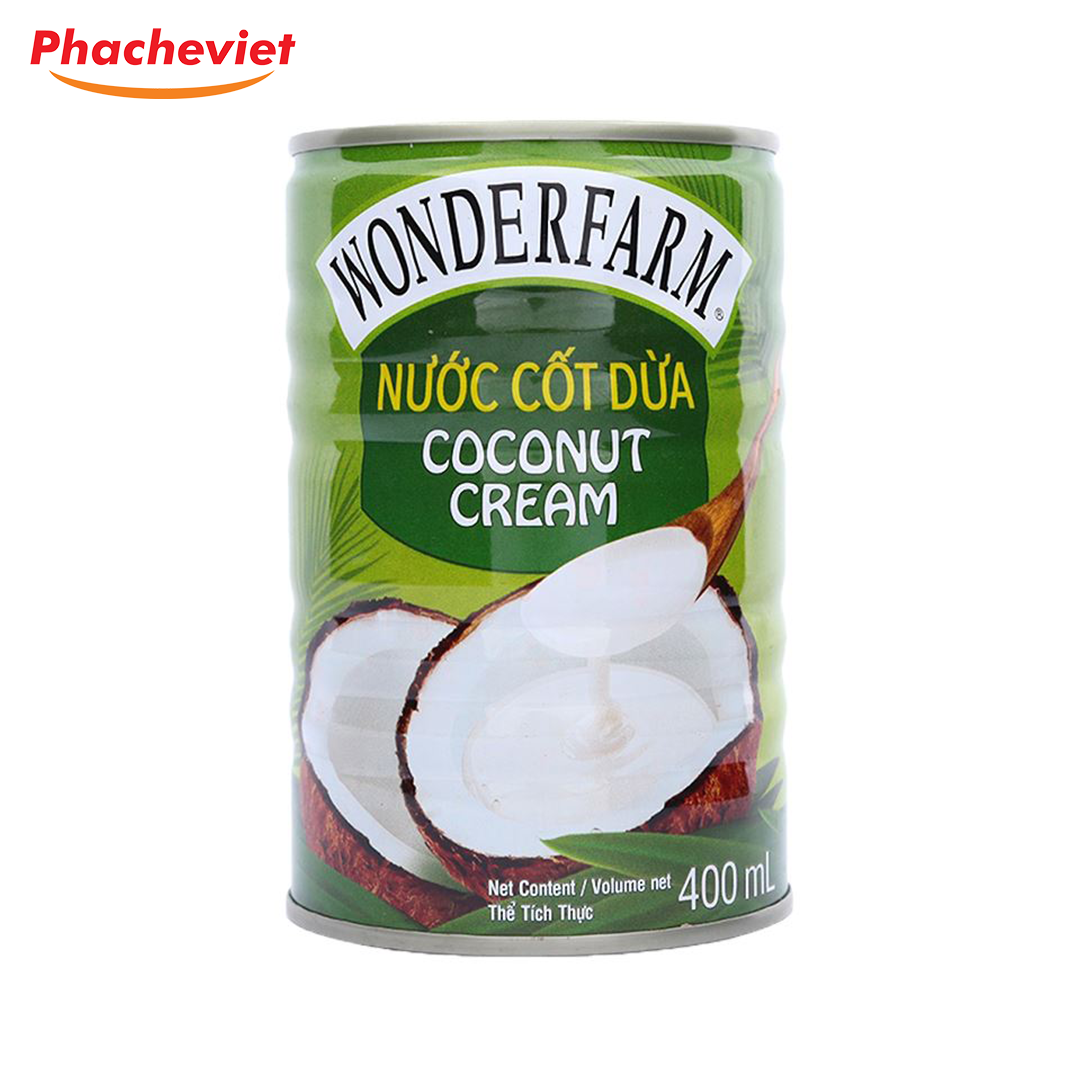 Với nguyên liệu nước cốt dừa, đầu dừa,... cốt dừa giúp bạn chế biến như món ngon như chè, soup, cà ri, râu câu hoặc những món ăn khác thơm ngon, hấp dẫn. Nước cốt dừa Wonderfarm lon 400ml tiện lợi không mất nhiều thời gian. Bột dừa Wonderfarm an toàn, dinh dưỡng