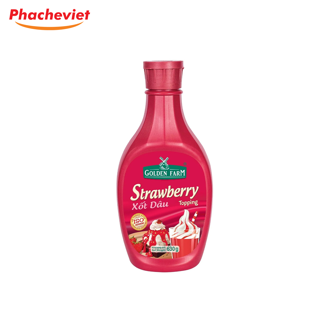 Sauce Dâu Golden Farm 630gr được sản xuất bởi thương hiệu GoldenFarm – là một trong những thương hiệu của Việt Nam đi tiên phong trong sản xuất các mặt hàng siro, mứt, các loại xốt, tương giàu dinh dưỡng,.. đảm bảo vệ sinh an toàn thực phẩm, không chứa chất độc gây hại cho sức khỏe con người.