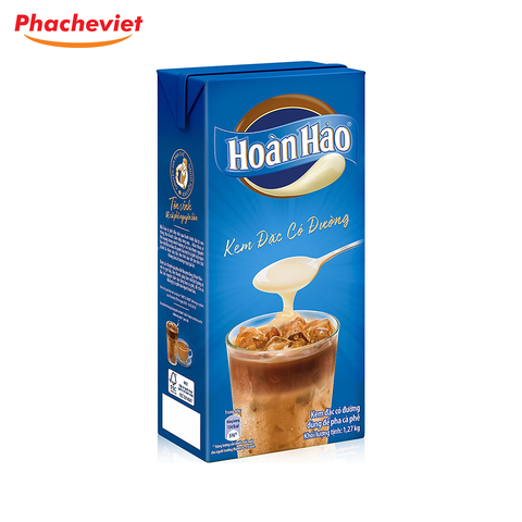 Sữa đặc Hoàn Hảo với hương vị béo, ngọt, độ sánh mịn tuyệt vời. Sữa đặc phù hợp làm nguyên liệu dùng chấm bánh mì, pha cà phê, pha sinh tố, trà sữa, làm bánh flan,.. đều rất ngon. Kem đặc có đường Hoàn Hảo hộp 1,27kg hộp lớn dễ bảo quản, dùng được trong thời gian dài.