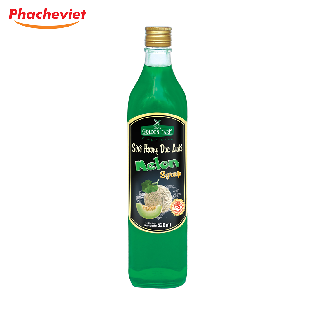 Đặc biệt: Syrup Golden Farm Dưa Lưới 520ml có màu đẹp, mùi thơm, vị ngọt nên thích hợp để làm thạch hoặc tạo mùi trà sữa, giá thành rẻ so với siro ngoại nhập nên được các quán bình dân, take away sử dụng.