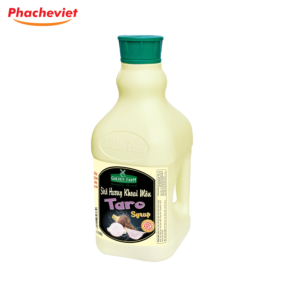 Đặc biệt: Sirô Golden Farm Khoai Môn 2L có màu đẹp, mùi thơm, vị ngọt nên thích hợp để làm thạch hoặc tạo mùi trà sữa, giá thành rẻ so với siro ngoại nhập nên được các quán bình dân, take away sử dụng.