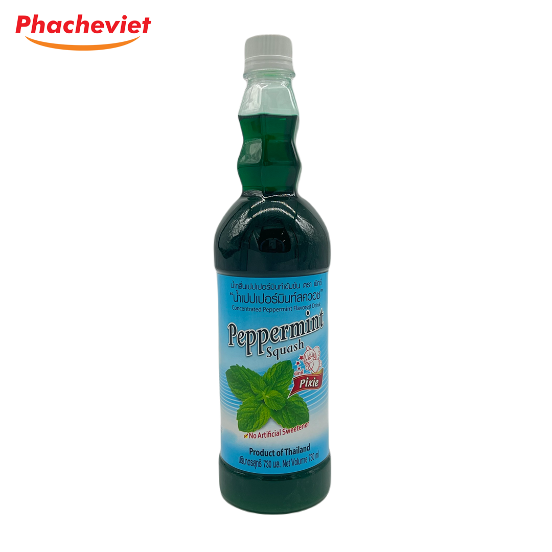 Syrup Pixie Bạc Hà 730ml là loại soda rất được các bạn trẻ yêu thích. Với màu sắc đẹp mắt, hương vị tươi mát này rất được ưa chuộng tại các quán cafe và trà sữa.
