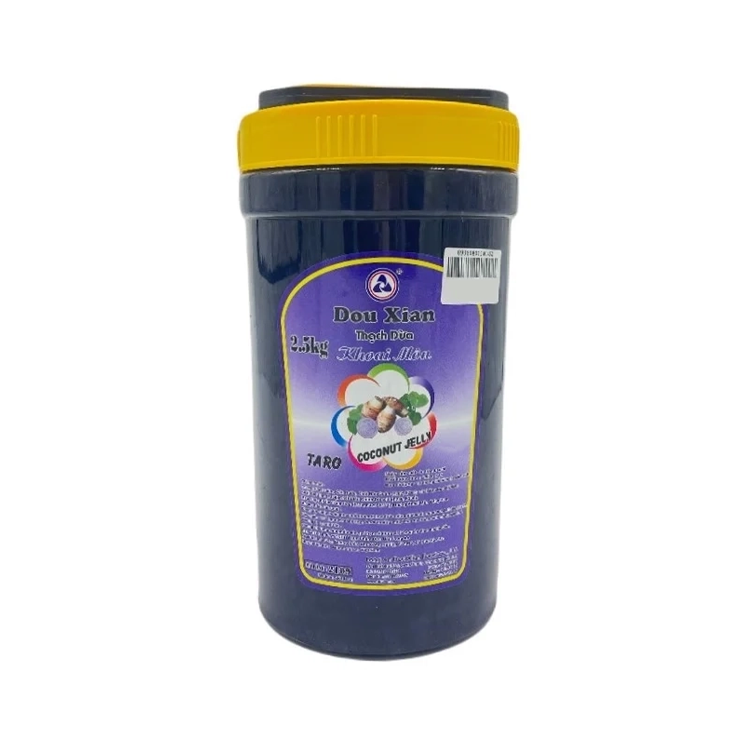 Thạch Dừa Khoai Môn Dou Xian là loại topping khá phổ biến tại các quán trà sữa. Với hương vị ngọt thanh, thơm đặc trưng thường dùng để thay thế trân châu. Đây là sản phẩm rất được ưa dùng tại các quán trà sữa lớn nhỏ trên toàn quốc hiện nay.